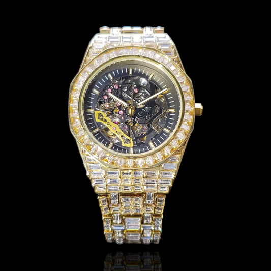 Pendentif croix de tennis glacé plaqué or